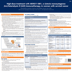 In 2014, the company completed a randomized Phase 2 clinical trial (Lm -LLO-E7-15) in 109 women, conducted in India, with recurrent/refractory cervical cancer. The final results were presented at the 2014 American Society of Clinical Oncology (“ASCO”) Annual Meeting and showed that 32% (35/109) of patients were alive at 12 months, 22% (24/109) of patients were Long-term Survivors (“LTS”) alive greater than 18 months, and 18% (16/91) evaluable with adequate follow-up of patients were alive for more than 24 months. Of the 109 patients treated in the trial, LTS included not only patients with tumor shrinkage but also patients who had experienced stable disease or increased tumor burden. 17% (19/109) of the patients in the trial had recurrence of disease after at least two prior treatments for their cervical cancer; these patients comprised 8% (2/24) of LTS. Among the LTS, 25% (3/12) of patients had a baseline Eastern Cooperative Oncology Group (“ECOG”) performance status of 2, a patient population that is often excluded from clinical trials. Furthermore, a 10% objective response rate (including 5 complete responses and 6 partial responses) and a disease control rate of 38% (42/109) were observed. The addition of cisplatin chemotherapy to axalimogene filolisbac in this trial did not significantly improve overall survival or objective tumor response (p =0.9981).