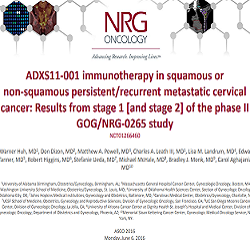 Based on these results, the Gynecological Oncology Group (“GOG”) Foundation, Inc. (now a member of NRG Oncology), under the sponsorship of the Cancer Therapy Evaluation Program (“CTEP”) of the National Cancer Institute (“NCI”), conducted GOG-0265, an open-label, single-arm Phase 2 trial of axalimogene filolisbac in persistent or recurrent cervical cancer (patients must have received at least 1 prior chemotherapy regimen for the treatment of their recurrent/metastatic disease, not including that administered as a component of primary treatment) at numerous clinical sites in the U.S. The trial was a Simon 2-stage design, with the primary efficacy endpoint being 12-month survival, with the objective of the secondary efficacy endpoints to evaluate progression-free survival, overall survival and objective tumor response. The primary safety endpoints were to evaluate the number of patients with dose-limiting toxicities and the frequency and severity of adverse effects.